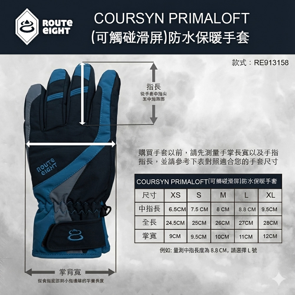 此款手套為大眾化版型,挑選時只要量測中指長度
