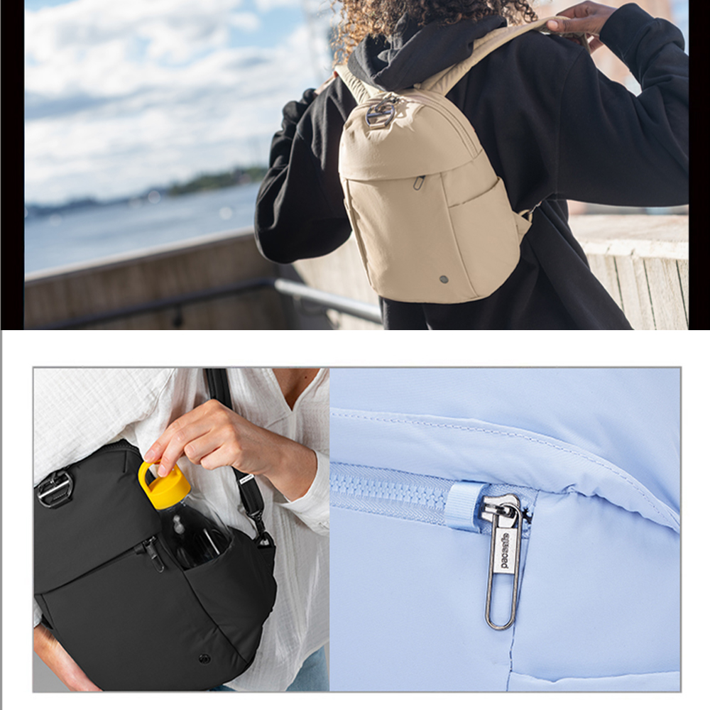 + 防盜拉鍊與扣環(Smart Zipper Security) 能鎖定袋口拉鍊,讓宵小知難而退