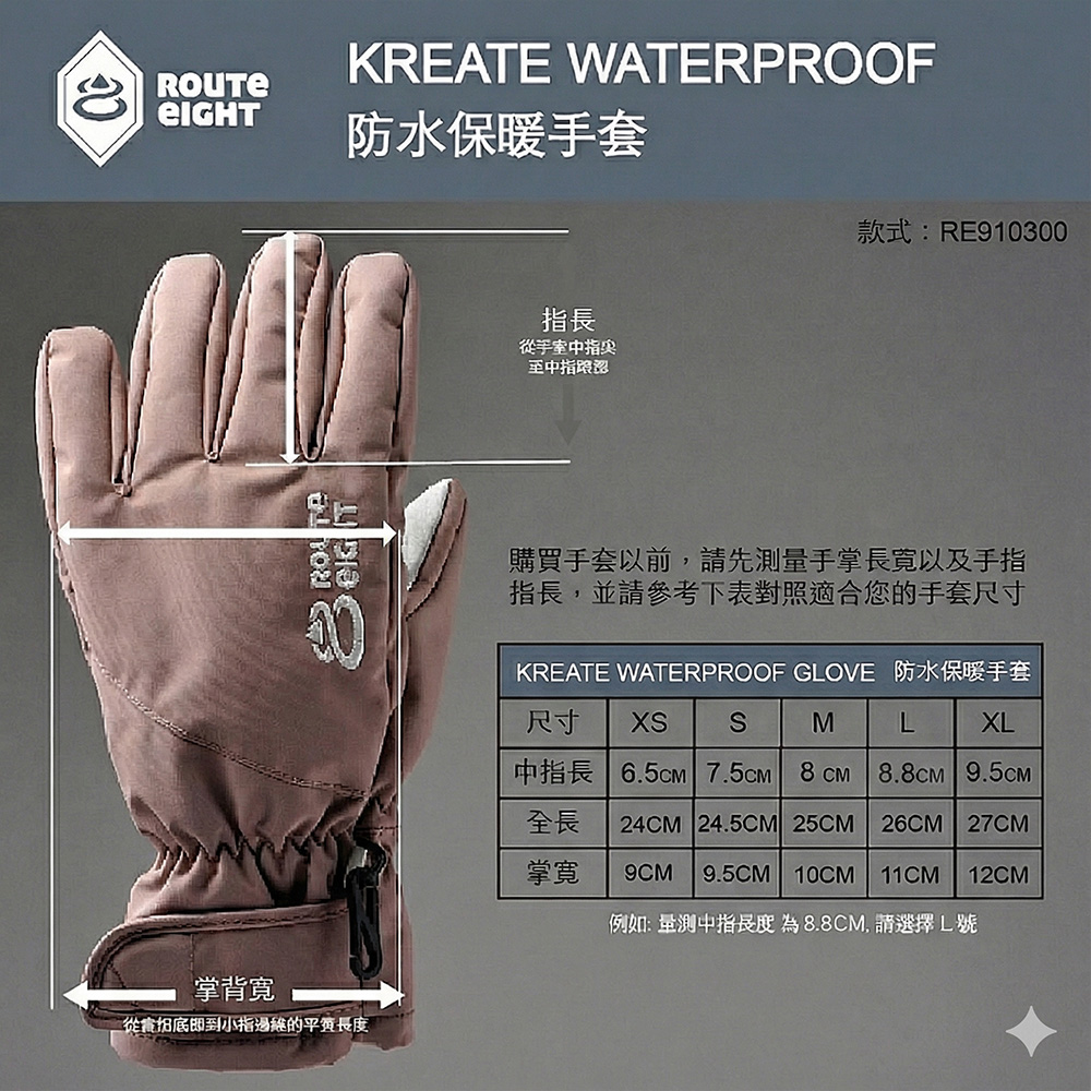 此款手套為大眾化版型,挑選時只要量測中指長度