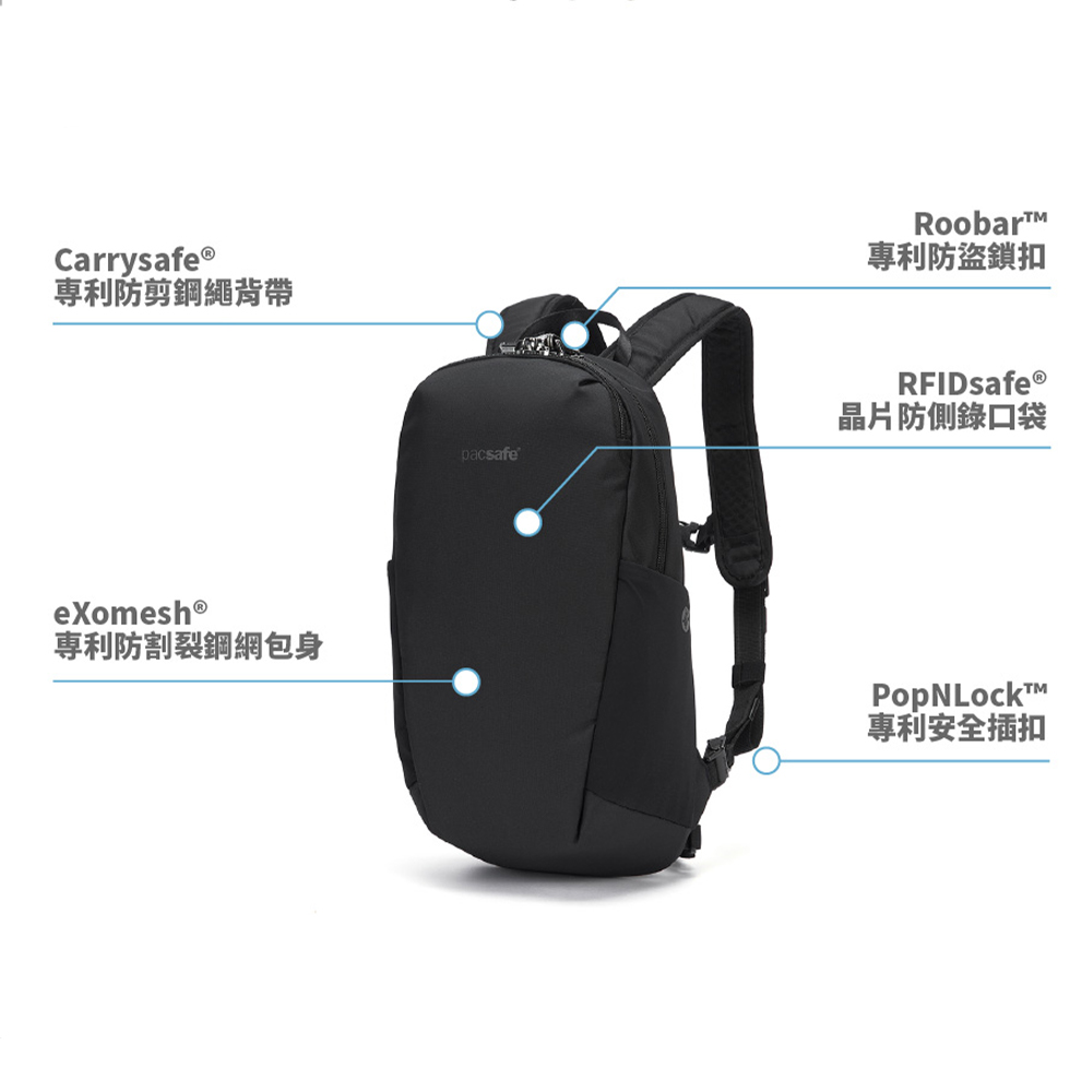 V Tech 防盜後背包12L 採用舒適輕巧的設計、寬敞好收納的空間,適合在城市探索的你。