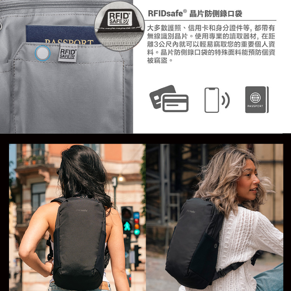 – RFIDsafe™晶片防側錄口袋,保護證件/信用卡被盜刷